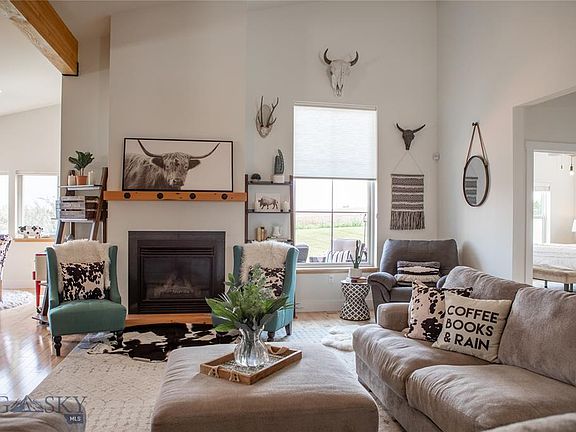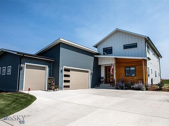 A charming mix of modern and farmhouse create a bright, light, and classic combination in this 4 bedroom 3 bath Middle Creek home. Middle Creek, known for its trails and expansive park areas, is a highly desirable subdivision situated in the Monforton School District and neatly tucked between Bozeman and Four Corners. Our favorite highlights of this home include the towering living space ceilings, expansive open concept living, dining and kitchen areas, the hardwood floors throughout the main floor, and the contemporary-designed kitchen. A large butcher block island seats 6+ people, perfect for inviting guests. This home is filled with natural sunlight coming from the many windows and backyard views of open farmland. An additional bonus room, perfect for a home office, is located on the main floor near the inviting entryway. A main floor master, ensuite, and mud/ laundry room make this a fully functional and contemporary floor design. This is a one-of-a-kind.