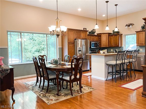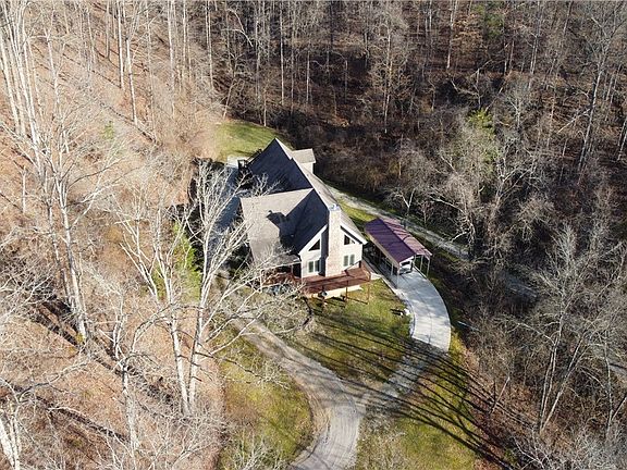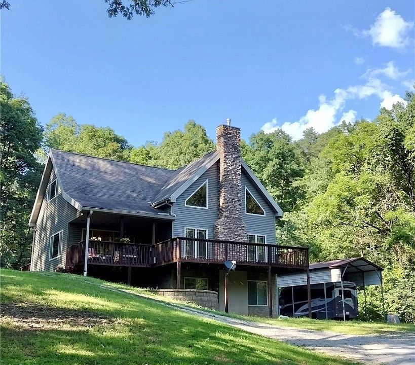 Rare find with this beautiful Chalet style Cape Cod on 17 mostly wooded acres!! This home features 11' first floor ceilings and a 22' vaulted pine ceiling and vented gas log fireplace in the living room. Enjoy feeling like you're on vacation every day when you wake up and have your morning coffee on one of the 5 decks. This wonderful home has convenient main floor living with kitchen, owner's suite (with walk-in shower), den and laundry on same level. The home features 4 bedrooms and 3.5 baths. The 4th bedroom can be used as an efficiency apartment/suite with its own entrance from the deck. Kitchen has a semi-open concept to living, with attached dining, pretty custom maple cabinetry, hardwood floors and SS appliances. Open loft area on 2nd floor could be another living area or office. Finished walk-out basement w/ family and bonus room, half bath. 2 Car garage on main level, 1 below grade used as workshop and 31X14 RV carport for your large truck, RV, boat or use it as a covered picni