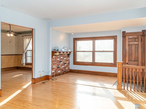Built for one of the founding families of Elgin - Charles & Francis Kimball! There is a lot of history in this home! Slate flooring in the entry way and back door area was reclaimed from Columbia School - Front porch railing reclaimed from Lords Park Pavilion - Brick walkway and front retaining wall were built with reclaimed bricks from old St. Joseph Hospital - and period millwork can be found thought this charming home! The large front porch welcomes you into the foyer and and spacious living room with 9ft ceilings and original hardwood floors. A large formal dining room that will easily accomodate a large table joins the living room and the oversized eat-in kitchen which features extensive cabinetry and access to the enclosed back porch. Additionally, the 4th bedroom is located on the main floor - this room offers built-in shelving and has been used as a library/den/bonus room. Upstairs are 3 surprisingly large bedroom - 2 of them can easily accomodate a king-sized bed and furniture. The upstairs bathroom features the original claw-foot tub! A full basement, with exterior access, offers tons of storage, an oversized 2-car garage (with storage above) and fenced backyard check all the boxes! Home sold in as-is condition / no FHA or VA.