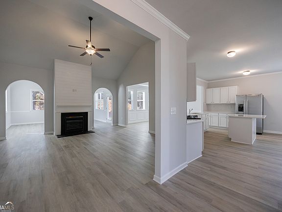 Brand New Construction - Never Lived In! Stunning Ranch with Sunroom! This beautifully designed 3-bedroom, 2.5-bath ranch-style home offers the perfect blend of comfort, style, and open-concept living. Enjoy a spacious kitchen featuring stainless steel appliances, quartz countertops, a large island with bar seating, and an inviting eat-in layout. A formal dining room with a tray ceiling and crown molding adds an elegant touch. The oversized family room-with its cozy fireplace-creates a warm and welcoming space for everyday living. A bright sunroom offers year-round natural light and a peaceful place to unwind, while the back patio is perfect for fresh air and outdoor enjoyment. The luxurious owner's suite includes a tiled shower, dual vanities, and a large walk-in closet. This community offers lawn care through the HOA, as well as access to a clubhouse, fitness center, and gathering hall. Located in a charming, golf cart-friendly city where life moves at a relaxed pace. Hurry, this one won't last long at this price!