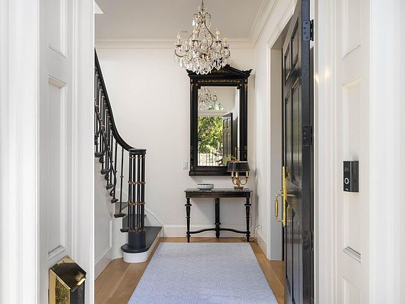 Period detailsHand-carved marble fireplaceTree-lined streetModern luxuriesBrick walkwaysFrench-inspired finishesLa cornue range