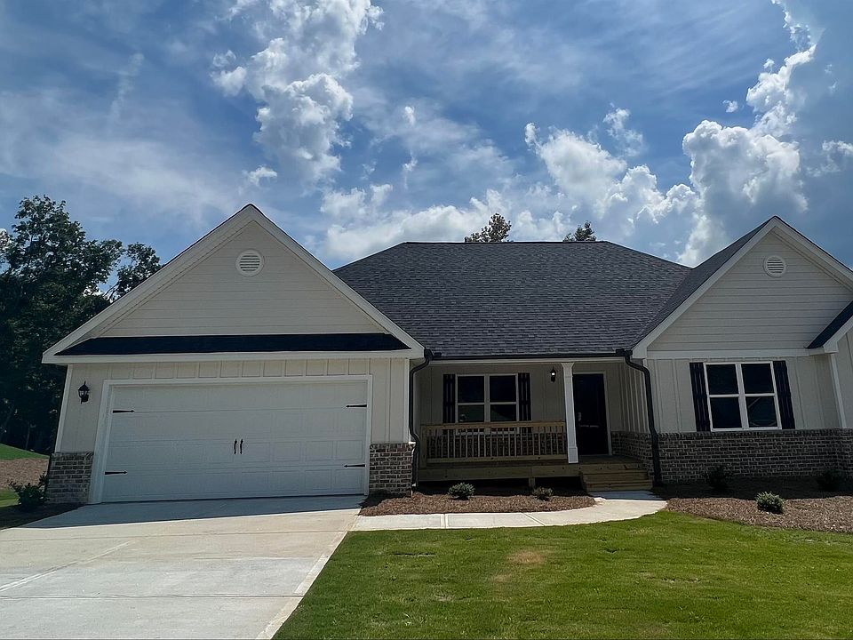 Coleman II on a basement- .Lovely open airy ranch has all the charm of the past w/its rocking chair front porch & features 4BR, 3BA. Gorgeous large master suite w/trey ceiling, master bath has separate shower, garden tub, double vanities and big walk in closet. Wonderful kitchen w/island, custom cabinets, granite countertops & tremendous walk in pantry, opens to vaulted family rm w/fireplace. Separate dining rm w/trey ceiling. Bright roomy breakfast area opens to private backyard. Hardi board siding with brick accents. 100% FINANCING FOR QUALIFIED BUYERS! Up to $5000 in closing costs w/ preferred lender.