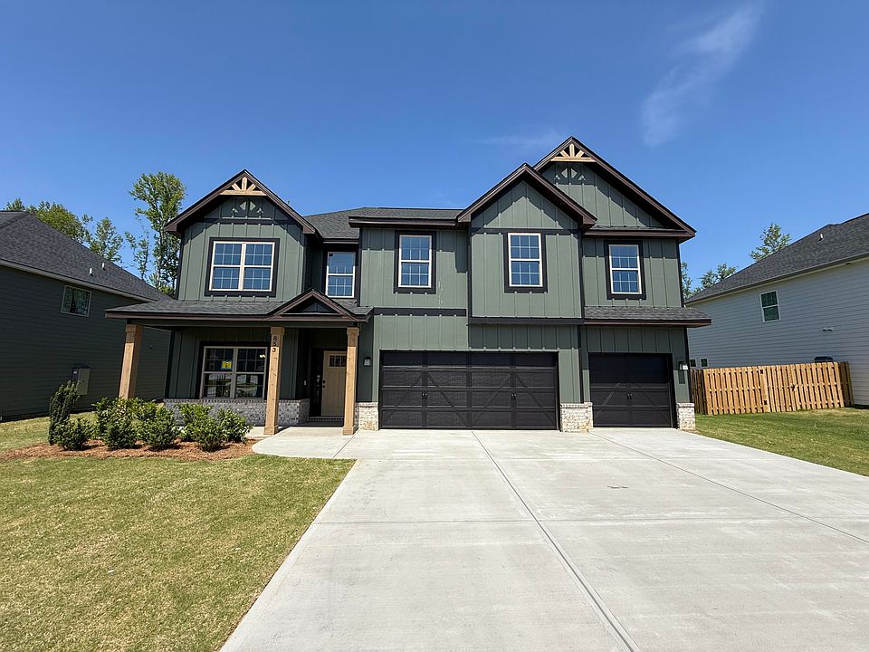 Soaring Ceilings in the 2 Story Foyer, Formal Dining Room Boasts Tons of Details, Spacious Great Room w/ Woodburning Fireplace creating the perfect space to Unwind. Spacious Kitchen w/ Stylish Cabinetry, Granite Countertops, Tiled Backsplash & Stainless Appliances to Include Gas Range. Large Kitchen Island open to Breakfast Area & Walk-in Pantry for Additional Storage. 5th Bedroom & Full Bath located on Main Level for Guests. Owner's Entry Boasts our Signature Drop Zone, the Ideal Catch all. Upstairs you will Find Expansive Media Room, as a Versatile 2nd Living Space. Huge Owner's Suite w/ Trey Ceilings. Owner's Bath w/ Garden Tub, Tiled Shower & Huge Walk-in Closet. Upstairs Laundry & Hall Bath Centrally located to Bedrooms. Enjoy Hardwood Flooring throughout Living Spaces on Main Level & Tons of Hughston Homes Included Features. THREE Car Garage and Our Signature Gameday Patio with Wood Burning Fireplace. Don't Miss this One!
