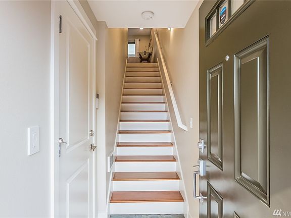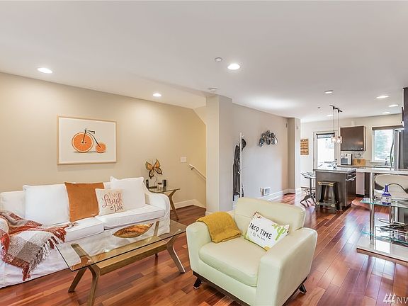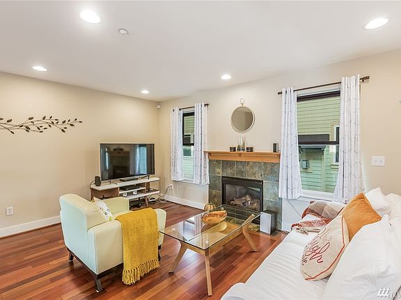 Immaculate townhome. Living room w/Cherry Oak flooring. Gas fireplace heats the whole floor. Beautiful kitchen w/center island, new appliances & backsplash. Dining space for entertaining. Upstairs includes master bedroom w/private deck, 2nd bedroom, bathroom w/double sinks. W/D stay. Attached garage. Private access to Urban Trail. Close to future Northgate & Shoreline light rail, 24/7 Rapid Ride, Trader Joe's, Central Market, Asian Family Market, Groceries, Richmond Beach, walk to restaurants.