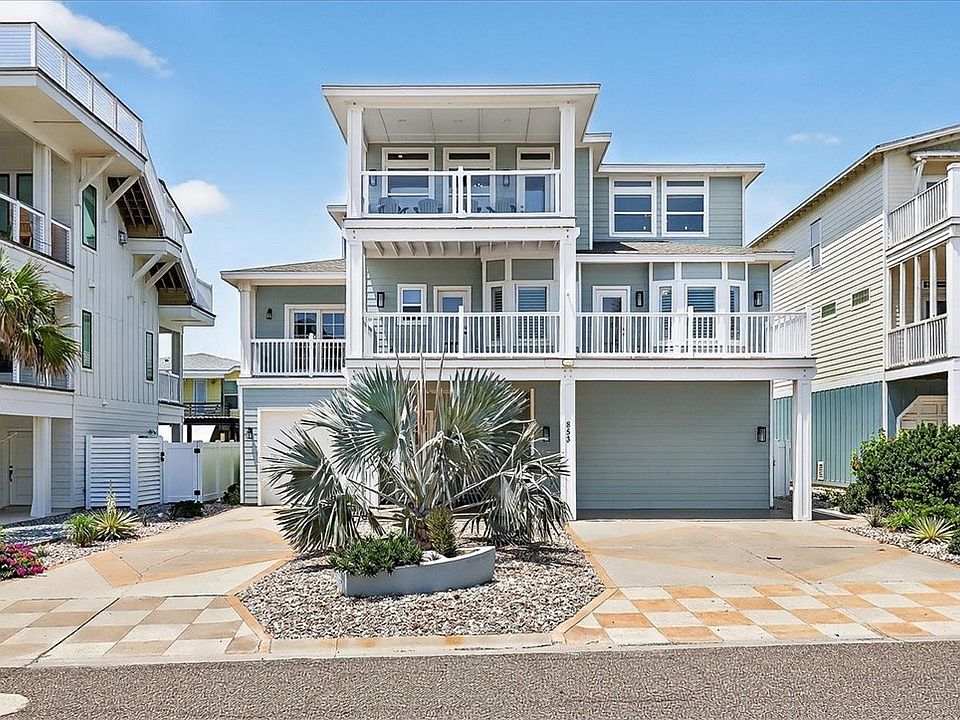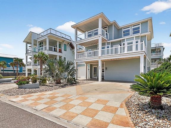 Experience the ultimate coastal retreat in this beautifully updated 3-story home designed for comfort, style, and entertaining. The thoughtful floorplan begins on the ground floor with elevator access to all three levels, a spacious game room/living area with wet bar, and a bonus room opening to the sparkling pool. On the second floor, you’ll find three spacious bedrooms with ensuite baths and private balconies, including the primary suite with custom shutters, a generous walk-in closet, and spa-like bathroom. The third floor is an open-concept showpiece with a gourmet kitchen, dining, and living area that flow seamlessly to a balcony overlooking the Gulf—perfect for enjoying breathtaking sunrises. Outside, the resort-inspired backyard has been refreshed with refinished palapa and outdoor kitchen, turf landscaping for easy maintenance, and a unique pool design featuring a built-in mosaic table for in-water lounging. A whole-home dehumidifier enhances comfort throughout the property. Most furnishings do not convey, though first-floor pieces are likely to remain. Oceanside Drive offers a coveted blend of privacy and accessibility, where residents enjoy a private beach boardwalk and golf-cart friendly access to all the best of Port Aransas.
