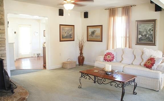 5 acres! Scattered large trees, pond and pasture. Fenced. Large country home with big porches on 3 sides. Main house is older than tax rec shows. Big rooms. Kitchen has lots of cabinets. Large living area. Nice sized breakfast area, with room for large table.Spacious master bedroom with large loft which can be den, exercise room or office. Nice big windows and plenty of natural light. Several older barns and outbuildings which need work, but very usable. House needs some work, but is priced accordingly.