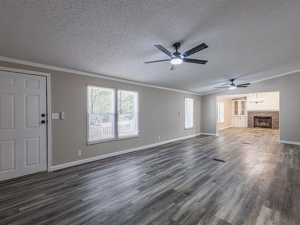 Welcome to this beautifully updated 3-bedroom, 2-bath home nestled on four spacious lots, offering plenty of room both inside and out. This home features a bright, open layout with generously sized rooms throughout. Enjoy peace of mind with modern upgrades including updated flooring, fixtures, finishes and textured walls that make this house feel like a HOME! Primary bath has a modern soaking tub, massive closet and separate shower/water closet for shared functionality. The large kitchen is designed with comfort and style in mind, boasting plenty of counter space and storage that overlooks the formal dining room that includes a cozy fireplace—perfect for gatherings and entertaining guests. Outside, the property boasts an attached 2-car garage, ideal for convenience and additional storage. With room to roam or garden, the expansive lots provide endless possibilities. This move-in ready home offers the perfect blend of comfort, space, and modern living!