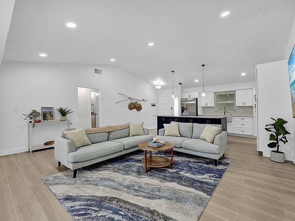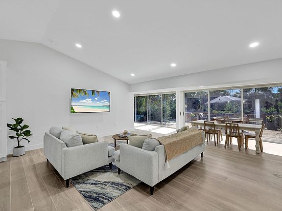 Available for longer term stay. Fully furnished. This beautifully appointed turnkey three-bedroom, three-bath home on the Sanibel River has everything you need with resident beach access just 1.2 miles away. As you enter this island oasis, you are greeted with an abundance of natural light, vaulted ceilings, a well-appointed kitchen with white shaker cabinets, quartz countertops, stainless steel appliances and an island large enough to host all your friends and family. From the bright open kitchen, you have an amazing view into the living room and out to the large backyard which boasts a gorgeous eastern exposure with mature native plants and a private dock, great for fishing, kayaking, or just enjoying the wildlife. Just past the living room you have a formal dining space and a bonus area that can be used as an office or a peaceful reading nook that is surrounded by wall-to-wall pocket sliders allowing you to really appreciate the indoor-outdoor space. Solid-built concrete home sitting on higher elevation with no water or damage from storms Milton or Helene.