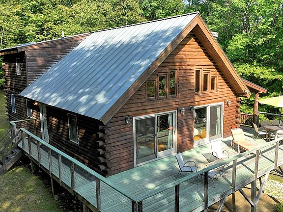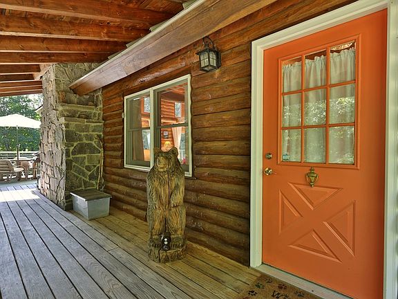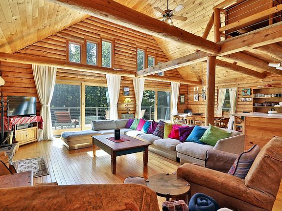 Discover your perfect mountain retreat in this stunning log cabin nestled on 11 private acres, minutes from Killington, Vermont. As you enter the home, the soaring cathedral ceilings will take your breath away, while the wood and timber surfaces evoke a uniquely rustic, yet sophisticated ambiance. With an open floor plan, knotty pine ceilings, hand-scraped natural log posts, gleaming hardwood floors and a striking fieldstone fireplace, this home is ideal for après-ski entertaining. The main level features a well-designed kitchen with center island and breakfast bar, a sunny dining area with lovely views, two gracious guest bedrooms and a full bathroom. The upper level comprises the private primary bedroom suite, including a spacious loft overlooking the great room, and an ensuite bathroom complete with jetted tub for the ultimate in relaxation. The finished walkout level offers a generous rec-room, two bonus rooms, 3/4 bath and a classic Vermont Castings woodstove for extra warmth on those cold Vermont winter nights. Step outside to enjoy the covered porch or soak up the sun on the south-facing deck, where you can take in the natural beauty of the surrounding landscape while sipping your morning coffee or enjoying an afternoon cocktail. With many recent upgrades and offered fully furnished, this home is truly turn-key — just in time for ski season! Don’t miss your chance to own this one-of-a-kind property. Call today for more information and to schedule your private showing.