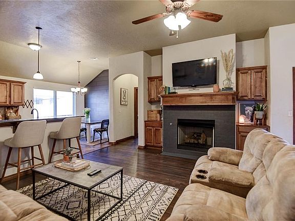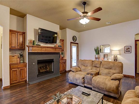 This stunning home features an outdoor oasis with a stunning covered patio and an open sitting area perfect for entertaining! Moving to the inside of the home that boasts a cozy brick fireplace surrounded by built ins in the living, while it flows to the kitchen which offers a breakfast bar, pantry, tile backsplash, stainless steel appliances, gas range, and an adorable dining area with built in bench seating. The master is a truly beautiful space providing wood floors, and an en suite that boasts double vanities, double closets, walk-in shower, and a whirlpool tub!