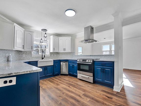 Park like setting. This is a beautifully renovated open floor plan home. The marble counter tops complement the Designer cabinets with a country style sink and stainless appliances. The three generous bathrooms feature designer cabinets with granite countertops, beautiful fixtures and custom tile in master bath and second bath. The living area has a stone fireplace with gas loges. Large Laundry room with washer, dryer connections. Deck and large front porch. The land is gently sloping with mostly level yard, a generous 1.04 acre. Close to schools and shopping. A lovely place to call home!