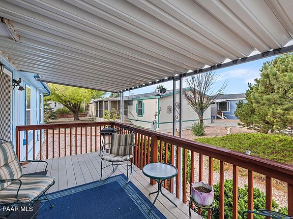 Welcome to 853 N State Route 89 Lot 96, nestled in the ever-popular and affordable Country West Mobile Home Park of Chino Valley! Experience the pride of ownership in this lovingly maintained double-wide home offering 4 bedrooms, 2 full bathrooms, and a spacious 1,512 sq ft open split floor plan. Set on a rare oversized lot--1.5 times the average size in the community--this property provides both comfort and room to breathe. The large kitchen boasts stainless steel appliances and beautiful cabinetry, perfect for everyday living and entertaining. Recent upgrades include brand-new carpet, new exterior paint (2023), new roof and water heater (2022), and luxury vinyl plank flooring, ensuring peace of mind and move-in readiness. The private primary suite features its own ensuite bath, while the versatile 4th bedroom works beautifully as a home office or can be converted back into a bedroom. Enjoy the charm of double decks in the front and back, ideal for relaxing mornings and evening gatherings. A powered shed adds extra functionality--perfect for a workshop, hobby space, or man cave. This is an exceptional opportunity where quality meets true affordability in one of Chino Valley's most sought-after communities.
