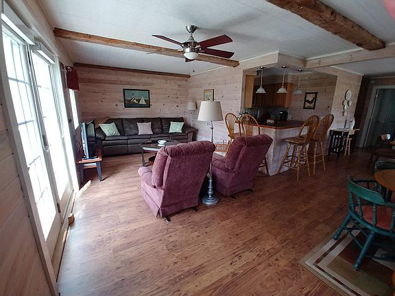 Great views of the lake, with a deck off the living room. Gallery kitchen with a dishwasher, stove, microwave and refrigerator. Bath has a separate shower and a soaking tub. WiFi, Satellite TV, electricity, heat, plowing, use of beach and deck on the lake