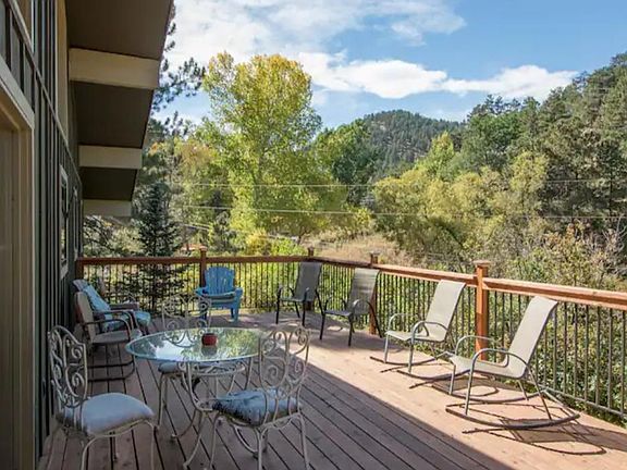Grand home less than 5 min to everything Boulder has to offer, yet a world away. The property was completely remodeled in 2016 w/timeless Fashion & Features hardwood floors, fireplace, hot tub, pool table, granite counter tops, over sized living room with soaring vaulted ceilings and a separate office area with desks. The home is fully furnished. 2 of 5 bedrooms have king size beds and the other 3 bedrooms have queen size beds.