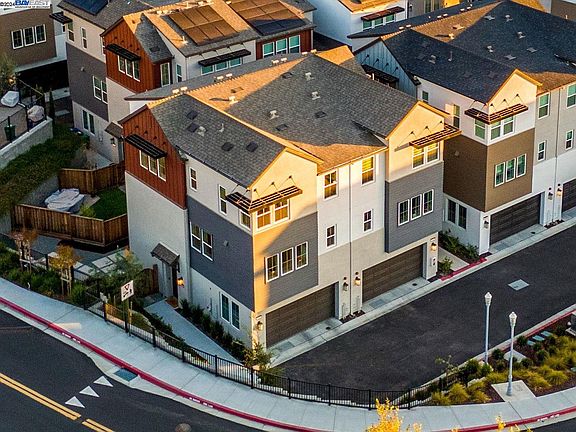 Hillside living in the peaceful, serene neighborhood of Hideaway. Modern, end-unit townhome boasts nearly 2,000 sq. ft. of bright & spacious living w/4 bed, 3.5 bath, thoughtfully designed to offer a balance of openness & privacy. Ideal for multi-generational living, the entry level features a private in-law suite complete w/full bath, perfect for guests/family. An expansive, finished 2 car side by side garage w/ EV charger acesss & epoxy flooring. Landscaped backyard, one of largest in community, offers space for dining/seating area. HOA-approved for small storage shed.On main level, a light-filled great room where living, dining, &kitchen areas flow seamlessly, framed by large windows w/views of the hills&city! . Enjoy fireworks on the 4th in the comfort of your own home! Private covered balcony acts as an extended space right off living area & invites you to enjoy your coffee. Gourmet kitchen impresses w/ oversized quartz island white cabinetry, ample storage, Kitchenaid s/s appliances. Upstairs has guest bedrooms, a full bath and the luxurious owner's suite, w/spa-like bath, shower, dual sinks,walk-in closet. Lg stacked w/d. Smart home,security system, custom shades. BBQ areas,bocce ball, bike tune-up,dog wash area, light up trail. BART, freeways, Cal State East, & more!