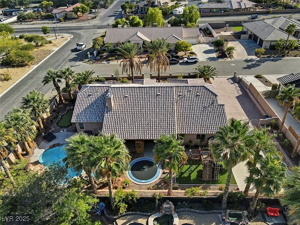 Welcome to 8530 Bella Vacio Court—an exquisite custom home nestled in an exclusive cul-de-sac of luxury residences. Perfectly positioned on a prime corner lot, this property offers 3-car garage and extensive gated RV parking with ample space for multiple vehicles, boats, or recreational toys. Inside, discover an open floor plan with soaring ceilings and a spacious great room centered around a sleek linear fireplace. The gourmet kitchen boasts quartz countertops, state-of-the-art appliances, walk-in pantry and an effortless flow for entertaining. Plantation shutters grace every window, adding timeless elegance throughout. The elegant primary suite opens directly to a lush outdoor oasis with a sparkling pool, covered patio, personal putting green, and in-ground trampoline—perfect for entertaining or relaxing in total privacy. Style, comfort, and sophistication define this remarkable home designed for those who appreciate refined living and endless versatility.
