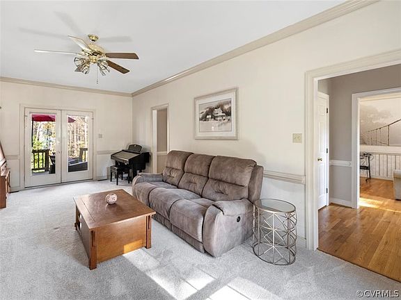 - Description: Carpet, fan/light, gas fp with custom mantel