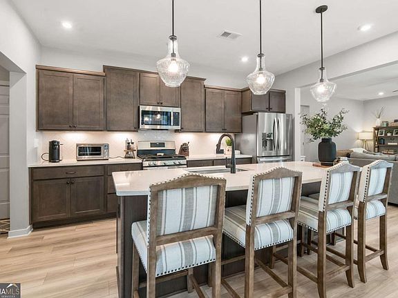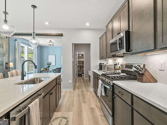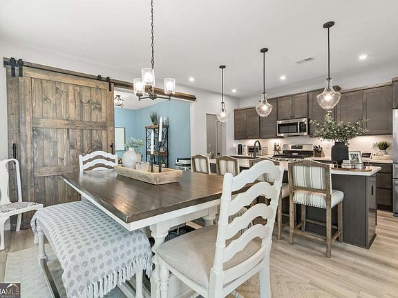Better than new! This beautifully designed home offers 4-bedroom, 2.5-baths and features bright and airy rooms filled with natural light from numerous windows, creating a warm and inviting atmosphere throughout. The kitchen boasts an oversized island, quartz countertops, a spacious walk in pantry for all of your culinary needs, and a large dining area-perfect for everyday living and entertaining. A dedicated home office or flex space with barn doors provides privacy when needed while the versatile loft provides the ideal spot for movie nights, gaming, or a quiet place to read. The primary bedroom is generously sized with a spa like bathroom, dual sinks, large shower and huge walk in closet. All secondary bedrooms are nicely sized and include spacious closets, ensuring comfort and functionality for everyone. Additional highlights include a mudroom, extra storage in the garage, and a fully fenced backyard with an extra-large flagstone patio-ideal for entertaining or relaxing. The level, private lot backs up to Eagles Beak Park and the Etowah River, offering serene views and easy access to nature. Enjoy the neighborhood amenities, including swim, tennis, pickleball, clubhouse, and playground-all in the sought-after community of River Rock!