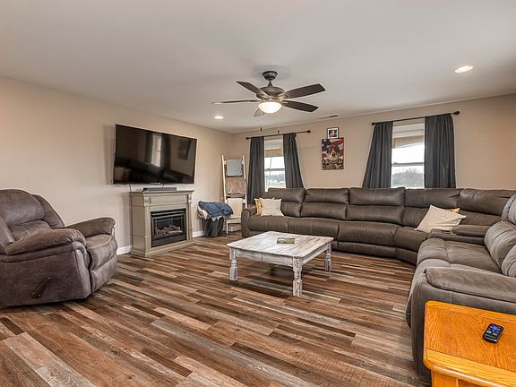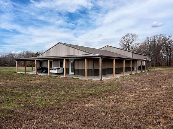 Country living at it's finest. This custom built home was finished in 2021. All sits on 9.98 acres. Enjoy the wildlife from the covered wrap around porch. Home includes three bedroom and an office. Large living room/kitchen open floor plan. Kitchen has quartz counter tops, gas cook stove, center island. Master suite has walk in tiled shower and double vanities. Tankless hot water heater. Attached garage is 40 x 50 with three 10 x 10 doors. Garage is a pull through. Garage has a half bath and a bar area with refrigerator. Insulated with 2" spray foam and 8" cellulose. There is a 16 x 40 lean 2. Low utilities. Average bill is approximately $160.00.