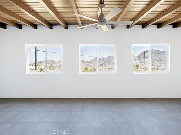 Welcome to your modern desert oasis in "Joshua Highlands"! This stunning 1 bed, 1 bath gem offers 784 sqft of contemporary living space, nestled on an expansive 5-acre parcel. Built in 1986, this residence boasts breathtaking desert vistas, providing the perfect backdrop for a tranquil lifestyle. Immerse yourself in the beauty of the desert landscape, with sweeping views that stretch as far as the eye can see. Enjoy the convenience of being just minutes away from the entrance to Joshua Tree National Park, offering endless opportunities for outdoor adventures and exploration. Step inside to discover a home that has been beautifully renovated from top to bottom. With a new roof, flooring, windows, kitchen, bathroom, and fixtures, every detail has been thoughtfully crafted to offer both style and functionality. This property operates on septic and is all-electric, providing eco-friendly and sustainable living with no gas required. Whether you're seeking a serene retreat or a nature lover's paradise, this desert oasis offers the perfect blend of modern luxury and natural beauty. Don't miss your chance to own this unique piece of desert paradise. Schedule your showing today and experience the magic of "Joshua Highlands" for yourself!
