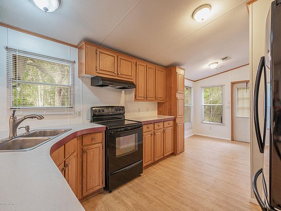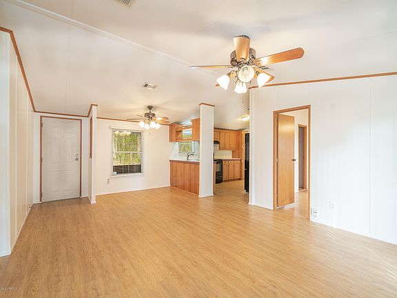 Updated and move-in ready! This 3 bedroom 2 bath double wide mobile home located within walking distance to Yulee Middle and High School backs up to Lofton Creek. The beautiful acre lot with mature trees offers cool MARSHFRONT breezes and is the epitome of PRIVACY. This home features wood-look floors throughout, split bedrooms, an eat in kitchen with peninsula and combined dining & living areas. Owners suite has a walk-in shower and large closet. Two additional bedrooms share a full bath. The screened front porch was added in 2015. The HUGE metal workshop with double doors is 24x30' and has space for everyone to tinker and create. OR zoning. Call your Realtor to schedule your private showing today and make this the country retreat of your dreams.