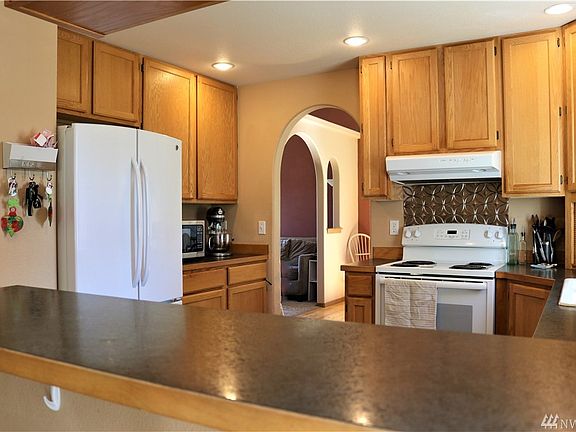 Need more space? Large 2,424 sqft home is tucked away on an acre at the end of a quiet, private road. Living room is open to kitchen and has hardwood floors and a gas fireplace. Family room, dining room and office are all on the main floor, plus a master with w/i closet and en-suite. Upstairs has 3 large bedrooms and a bathroom. Backyard is fully fenced with a great patio for entertaining, a large shed, play structure and trees for shade. A lovely raised bed garden area is in the front yard.