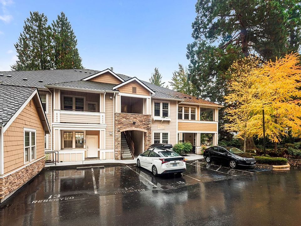 Welcome to this stunning 2-bedroom, 2-bathroom home located in the vibrant city of Redmond, WA. Enjoy easy one-level, stairless living w/ quality craftsmanship, high-end finishes with soaring vaulted ceilings. All new hardwood floors and newly painted throughout. Relax around the gas fireplace and prepare your favorite meals in the chef's kitchen with gas cooking. Retreat to your large primary suite offering a walk-in closet & en-suite bath with double vanity. Custom walk-in closet. A fantastic location, just minutes to shopping, dining, parks & Light rail. One assigned parking plus your own private garage!
