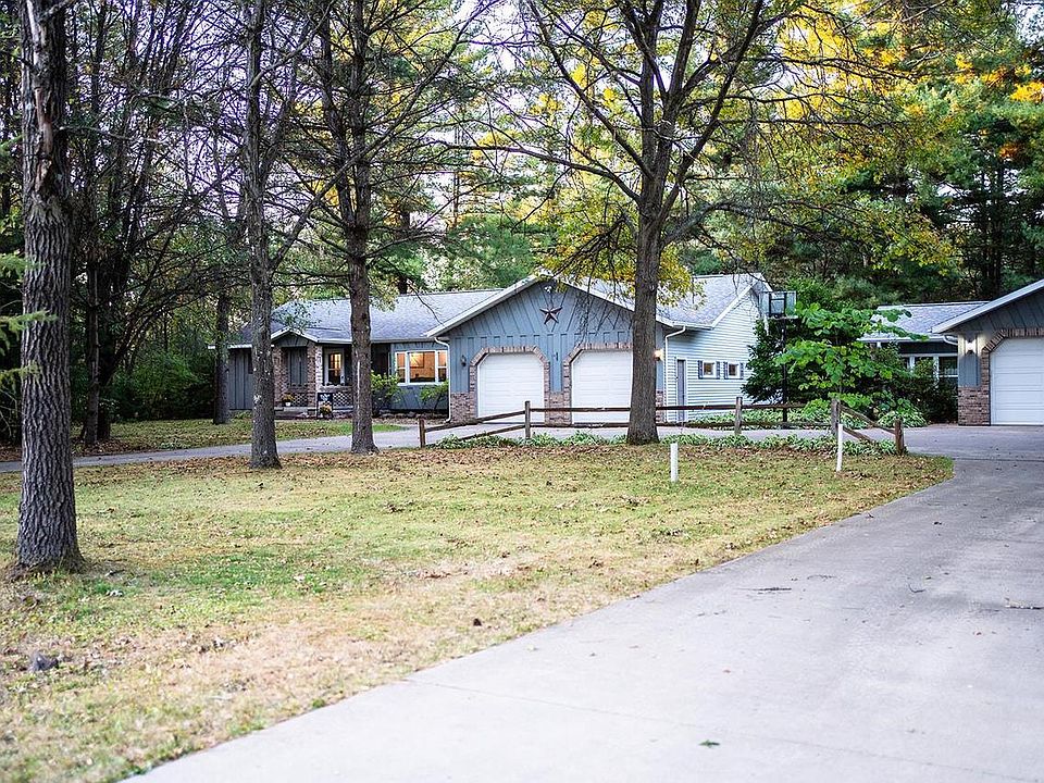 Welcome to your new oasis, a stunning 4-bedroom, 2.5-bathroom home nestled on a sprawling 1.98-acre lot embellished with mature trees that provide privacy and tranquility. This property is the perfect blend of comfort and elegance. Step inside and be greeted by a large living room with a stone wall and bay window that brings in natural light. The open-concept layout flows seamlessly into a gourmet kitchen, with the dining room making it an entertainer's dream. Bedrooms boast generous walk-in closets, ensuring ample storage space for all your belongings. Experience the luxury of main floor laundry for your convenience, and imagine having a second living area off of the dining room that allows you to unwind in your very own hot tub after a long day with a wood burning fireplace for cozy evenings. The 4-car insulated garage offers not just parking but also a dedicated workshop and dry bar for your entertaining needs & for your creative projects or hobbies. With so much outdoor space, there?s room for gardening, play, or simply enjoying the peaceful surroundings.,Located in the picturesque Town of Grant, this home provides the perfect blend of rural charm and accessibility to modern conveniences. Don?t miss out on the opportunity to make this beautiful property your own. Schedule a tour today and step into your future home! Your dream lifestyle awaits!