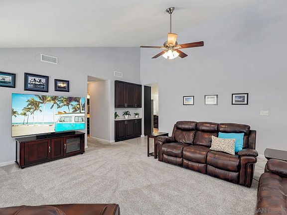 Entertainer’s Dream!! Well maintained two-story home located within the heart of Mira Mesa. This amazing residence features neutral paint and trim, highly energy efficient central AC/heat that is less than a year old, mini-split located upstairs, and a cozy gas fireplace. Vaulted ceilings with large dual pane windows bask the home in an abundance of natural light. A beautifully appointed kitchen boasting quartz countertops, newer stainless steel appliances less than 3 years old, recessed lighting, a built-in desk area, and rich cabinetry with an island with breakfast counter seating that opens to the living area. The spacious primary suite is located on the main floor offering ample closet space and its own en-suite bathroom. There is a TV/playroom located upstairs with two of the secondary bedrooms and a bathroom. Outdoor living has been extended to a large backyard with thoughtfully designed hardscape and low maintenance landscaping, making it perfect for entertaining. Extremely low HOA fees with access to the community pool. Centrally located, just minutes away from highly rated schools, shopping, dining, parks, Lake Miramar, Interstate 15, plus so much more. Don’t let this opportunity pass you by!
