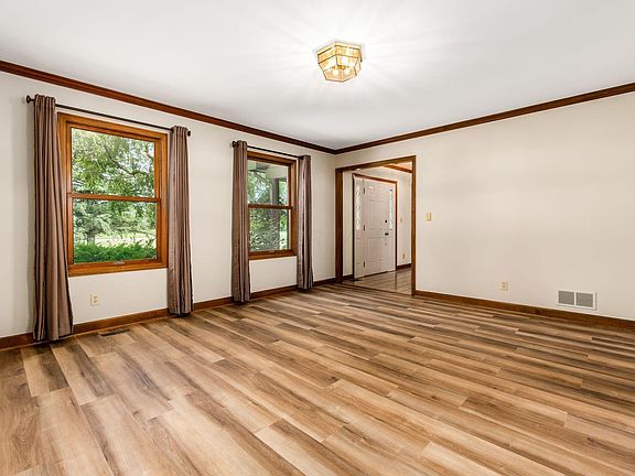 seeking space and tranquility. With many updates throughout, it boasts a first-floor office, convenient laundry room, spacious pantry, and a family room with soaring ceilings. The highlight is a three season sunroom with 8' Anderson sliding doors, which allows a stunning view of the gardens and wildlife. The partially finished basement includes a wall of cabinets, built in desks and bookshelves. Outdoors, the property continues to impress with a separate 30x40 foot shop with a cement floor and 200A electric service, a fenced tennis court and a charming 16' gazebo. The grounds are adorned with a variety of trees and lush gardens creating a park like setting.