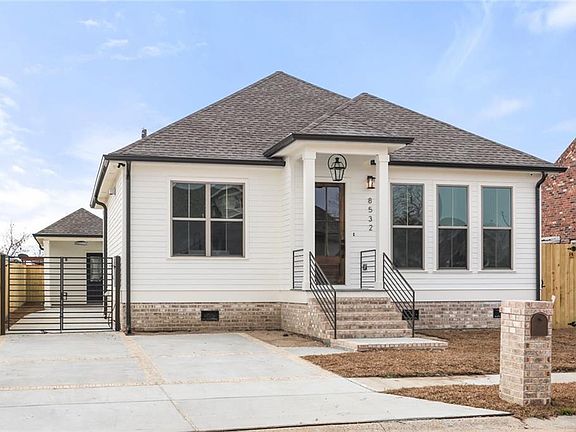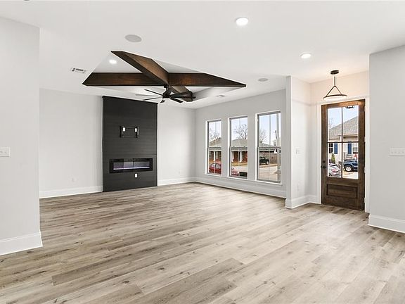 Extra Extra! You won't believe all the Bonus Features this New Home has to offer without seeing it. Enter this raised 3-bedroom, 2 1/2 bath charmer and be welcomed into an inviting, warm yet open living/dining/kitchen area w/75" flat screen TV, electric fireplace. The flow and character makes entertaining effortless from the interior chef's kitchen, SS appliances, potfiller, beverage center, functional waterfall quartz counter island, to the exterior covered carport equipped w/power source for electric car charger & storage. Spacious backyard is fully enclosed w/rear yard access metal gate, wood fence & add'l single gate. The oversized & extended driveway leads to a rear entrance, mudroom space, laundry room w/accent tile flooring & included stackable washer & dryer. All bathrooms are stylishly tiled; Primary bathroom, closet & bedroom are designed for pampering, privacy & relaxation. Enjoy the sleigh soaker tub w/glass-enclosed shower tiled from floor to ceiling, 6-jets, handheld, & overhead rain shower, then cozy up to electric fireplace beneath the 11' tray ceiling w/beams. Modern fixtures, fans w/remotes, accent walls, barn doors, 10' ceilings throughout, tankless water heater, seamless gutters, surround sound & under-soffit lighting & the list of lagniappe finishes continues!