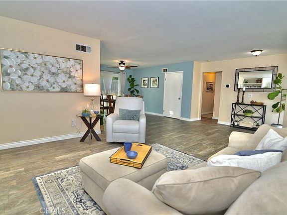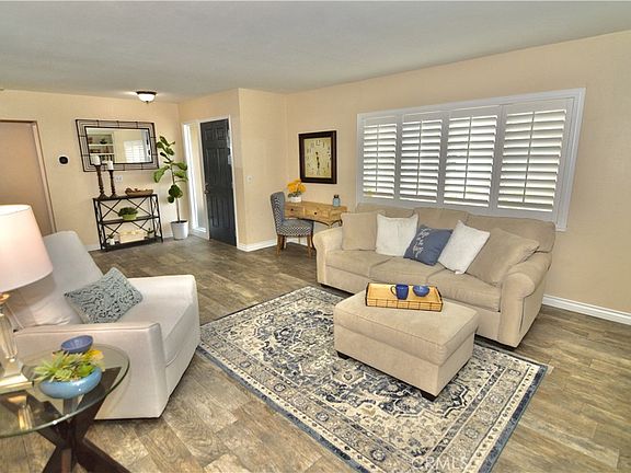Beautiful single-story home in the desired area of Rancho Cucamonga (Alta Loma). Enter this home with its open floor plan the large living room is open to the dining area with porcelain wood-look tile. The dining room has a sliding glass door that opens to the large back yard which also allows lots of natural sunlight into the living area. The living room has a beautiful rock fireplace surrounded by built-in shelves and cabinets for storage. There are plantation Shutters throughout the home. The home was built in 1962 and has 1,296 square feet of living space and a large lot, of 7,592 square feet. There are 3 bedrooms and 2 bathrooms. The kitchen has stainless steel stove and dishwasher and a door to the backyard. The laundry is in the kitchen room for a stackable washer and dryer. The master bedroom has a bathroom with a tiled shower, a vanity, and a storage closet. The closet in the master and the first bedroom has built-in closet organizers. The home has copper plumbing, including a main line to the street which was replaced about 8 years ago. It has a central air conditioner/heater, the insulation in the attic was super insulation, and dual paned windows. A Large concrete driveway with lots of parking leads to the 2-car garage with access to the backyard. The roof is about 4 years old. Your new home is close to award-winning schools, shopping, and the 210 Freeway. You do not want to miss seeing this home.