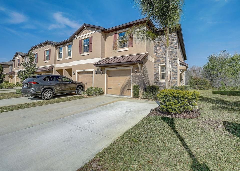 End Unit Townhome with RARE EXTRA PARKING PAD and an Easy commute to downtown Tampa, the airport or the Gulf Beaches make this 3 Bedroom / 2.5 Bath /1 Car Garage Townhome with 1,787 Sq Ft of living space the perfect home for your family! Mature landscaping greets you as you walk up to the impressive façade of this home, while the trees behind provide relaxing views from the lanai and great room. Coming into the first floor foyer, we have the single car garage to the left along with a half bath. Ceramic tile blankets the entire lower level including the bathroom, kitchen, and living area while the tall ceilings add to the light and airy atmosphere of the home. The open-plan dining room /family room / kitchen combination brings everyone into the conversation while entertaining family and friends. The kitchen has plentiful shaker-style cabinets, stainless steel appliances, abundant counter space with breakfast bar that are sure to unleash the MasterChef in you. To the rear of your living area is your covered and screened patio overlooking the WOODED CONSERVATION AREA that is sure to melt away your stress! The master bedroom will not disappoint with its high ceilings,large walk-in closet and en-suite bath. The master bathroom has ceramic tile flooring, walk-in shower and dual sink vanity. The secondary bedrooms are perfect for your loved ones which share a Jack-N-Jill Bath with a tub/shower combination. All bedrooms feature modern ceiling fans. The second floor also houses the laundry / utility room close to all bedrooms for your convenience, and a loft area that can be used as an office, play area or any other need you may have! You deserve this wonderful Florida lifestyle! Don't miss out on this opportunity to own a beautiful home in one of the most desirable residential communities in Tampa. This home is priced to sell and will not last long.