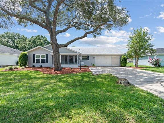 Escape before the first snow fall!! This home has been recently refreshed and ready for a new owner and quick closing. This 3-bedroom, 2 bath home includes a stunning kitchen with upgraded cabinetry, soft close features on the doors and drawers, lower slide out storage shelves, crown molding and granite counter tops. The kitchen includes a breakfast nook, 2 Pantries and a Bosch dishwasher. The floorplan features a large living room with vaulted ceiling, dining area and eat in kitchen.! The triple-split bedroom layout offers each bedroom privacy and the 3 hall closets offers ample storage. The flooring is tile in the living areas with the bedrooms and dining area offering newly installed vinyl plank flooring. The enclosed lanai includes newer windows and air conditioning offering a formal dining room or additional entertaining space for game nights! This home includes front and rear screened enclosures. Recent interior improvements include both bathrooms being remodeled, Vinyl windows with storm covers, ceiling fans with remotes and interior paint. Exterior upgrades and improvements include New Roof in 2024, Vinyl windows in 2008, Screen room and patio slab in 2023. Additional features include Leaf Filters on the gutters, irrigation system, garage service door, utility sink in the garage, insulated garage door and insulation in the ceiling of the garage. The back yard offers a park like setting overlooking the greenbelt area. Two minutes in the golf cart or a short walk and you will arrive at the amenities of Marion Landing. Amenities include bowling, swimming, exercise equipment, clubhouse activities and monthly social mixers! The monthly HOA fee includes all these amenities and your water and sewer. This is an active 55+ community in the heart of Southwest Ocala with excellent access to shopping, restaurants and medical facilities.