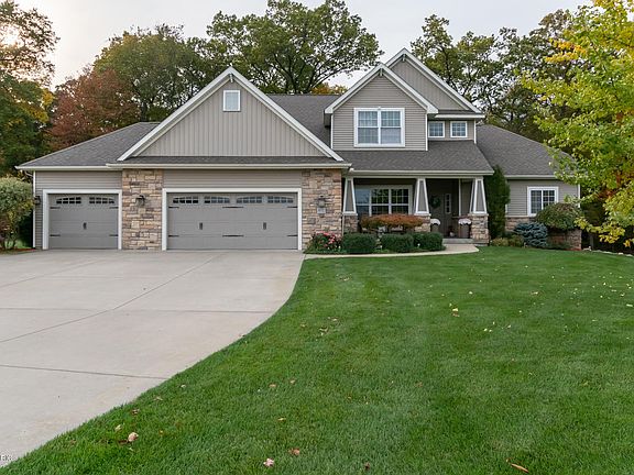 This stunning home sits on a large corner lot with a lush green lawn and beautiful woods along the back for privacy. An open concept updated main floor consists of: brand new wide plank hardwood flooring, main floor ensuite with two walk-in closets, formal dining room, a large two story family room with a two story stone fireplace and 8ft tall white built-in cabinets, wetbar area with wine fridge, a large mudroom, large main floor laundry, brand new composite deck off the main floor, updated elegant lighting fixtures and faucets throughout. The second floor has 3 spacious bedrooms and a full bath. The bright walkout lower level was finished in 2015 with full bath, an office with glass door, the 5th bedroom and a very large family room with large windows and sliding door.