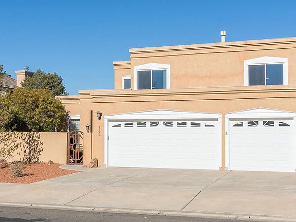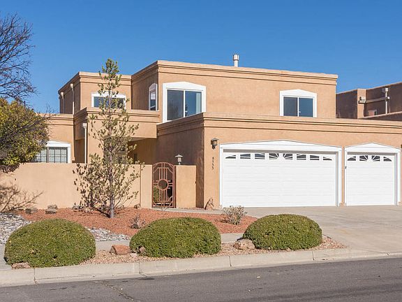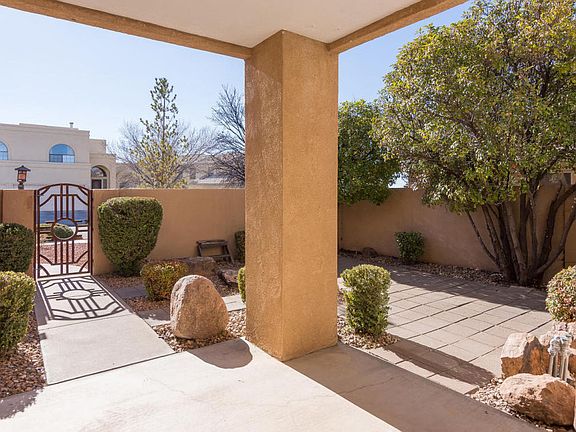 STUNNING bright & airy custom home, meticulously maintained inside & out; located in high demand, far NE Heights neighborhood & top rated school district, within minutes to Desert Ridge Middle & La Cueva High Schools! Lovely landscaping! Delightful court yard entry! Towering raised ceilings, clerestory windows, skylights, flooding the home with natural light! Updated kitchen with refinished cabinetry, granite counter tops, stainless steel appliances! Large covered patio with mountain views! Cozy dining/living room sharing a 2-way gas log fireplace! Huge great room with raised ceiling! Main floor master suite has masterbath w/ jetted tub, separate shower, large walk-in closet! Main floor 4th bedrm/study! Handsome laminate & hardwood floors! Huge loft w/VIEW balcony! Recent coolers! WOW!