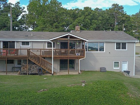 Major Remodel/addition in 2019. Lake views year-round from this rustic lodge-style home, minutes from Rogers. The upper level with vaulted ceilings that integrates the living room featuring a fireplace with the dining area and kitchen with a pantry. Comfortable 3 bedrooms, office with a scenic deck, three full baths, guest powder room. Master bath has walk-in shower. Appliances and 4wd UTV are included. Walk-out lower-level features game room, TV room, ¾ bath, storage areas and small exercise area. 2+car garage includes a workshop & ATV parking, storm shelter and large driveway with additional parking space. Private lake access via 4WD ATV trail leading to lighted parking area. The private 2 slip dock is equipped with electricity, a 4,000 lb boat lift and swim deck. Safety and convenience are prioritized with exterior lights that can be controlled from both the parking area and the house itself. Furnishings are negotiable.