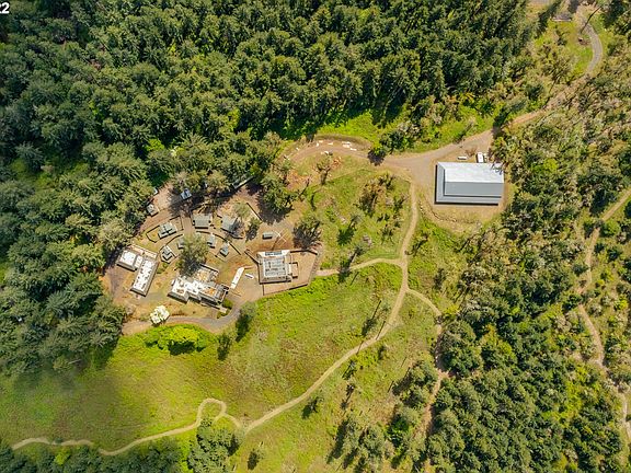 This 81.68 acre estate is just one mile from the Eugene city limits & offers sweeping views of the coastal range. There is a ¼ mile driveway off of Willamette Street to this tucked away oasis. It consists of a spacious4,700 sq ft home,a 1,500 sq ft guest house w/2 car garage,a 2,500 sq ft +2nd level finished & heated shop/office. Improvements-7500 sq ft pole barn w/crushed granite rock floor,insulated + propane heat.2-5000 gal water tanks.New septic.This was a non-profit animal rescue sanctuary