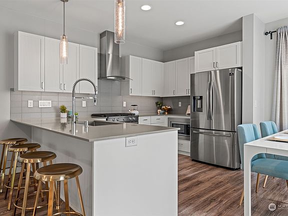 MODERN LUXURY CORNER UNIT w/amazing floor plan in the best location of Ravenna 88 Community. Quiet location in the entire neighborhood tucked away from the street. Contemporary design w/white cabinetry, quartz countertops, glass tile backsplashes, SS appliances, metal railings, hardwood floors, smart switches & spacious covered balcony. Lower level bedroom & bath for guests or work from home office. Large contemporary kitchen & spacious living room that feels like a single family home w/tons of natural light. Exceptional location to all major commuter routes & public transportation. Moments away from Green Lake, Roosevelt Light Rail station, Magnuson Park, and UW. 10 minutes to Downtown Seattle & SLU. May not stay long. PRE-INSPECTED.