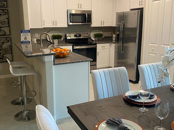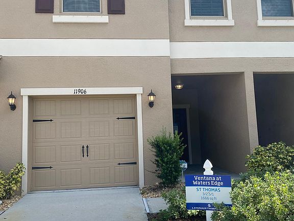 LIKE-NEW TOWNHOME! Located in the gated community of Ventana at Waters Edge. As you open the private entrance front door, you will find a spacious 3 bedroom, 2 1/2 bath home with bright kitchen, white shaker cabinets, granite countertops, all stainless appliances, tile floors and all gray and white tones throughout. Freshly painted in Sherwin Williams Agreeable grey. The open floor plan is great for entertaining. The private screened in porch overlooking ponds, trees, and nature's guests, makes the space a perfect spot to unwind after a long day. Upstairs, you will find a large master suite with private bathroom and a walk-in closet. There are two other bedrooms and a full bathroom along with a separate laundry area with washer and dryer included. The loft is the perfect bonus room for a study, office space as well as another TV area. You decide! Park your car in your garage away from the Florida weather! Just steps away is the pool and cabana area, as well as access to the Waters Edge community clubhouse, huge resort style pool with splash park, billiards, fitness center, basketball court, and playground area. Private dock for the community is also a great place for a walk as well as the walking/biking path right outside the entrance. Great location with easy access to Tampa, Suncoast parkway/589 and gulf beaches. HOA is $125 monthly and $416 quarterly for the master community. It includes high speed internet, cable TV, outside maintenance, and trash pick-up. Make this your next home!