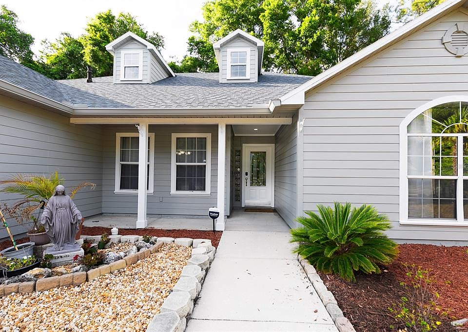Welcome to this stunning split-floor plan four-bedroom, two-bath, freshly painted home in a sought-after Hickory Forest neighborhood. As you step inside, you'll be greeted by a warm and inviting atmosphere, emphasized by an open floor plan that seamlessly connects the kitchen and living room. This layout is perfect for those who love to entertain guests or for parents who want to keep an eye on their children playing while they cook. The kitchen features modern appliances and ample counter space, making meal prep a breeze. To your right, discover three well-appointed bedrooms, each offering comfort and style. Perfect for family, guests, or use as a home office. On your left, you will find an expansive master suite designed for relaxation and privacy. Just a short 10-minute walk away is Haile Plantation Village. Walk or bike to the farmer's market on Saturdays or visit local ice cream and coffee shop. Enjoy the beautiful shaded trails that Haile Plantation has to offer, adding to the charm and convenience of this location. This is one of only a very few homes in the entire subdivision that has direct access to the Haile Village! The highlight of this home is undoubtedly its generous living spaces, both private and communal, tailored to enhance your living experience. This house is not just a place to live but a place to thrive, offering comfort, convenience, and elegance. Take advantage of the opportunity to make this your new home, where every detail is designed for living a life of comfort and style. This home is fully move-in ready with the recent upgrades: Roof installed in 2020, HVAC in 2022, majority of flooring- in 2020, stove- in 2022, dishwasher- 2022, bathrooms remodel- in 2020. side patio concrete - 2018.