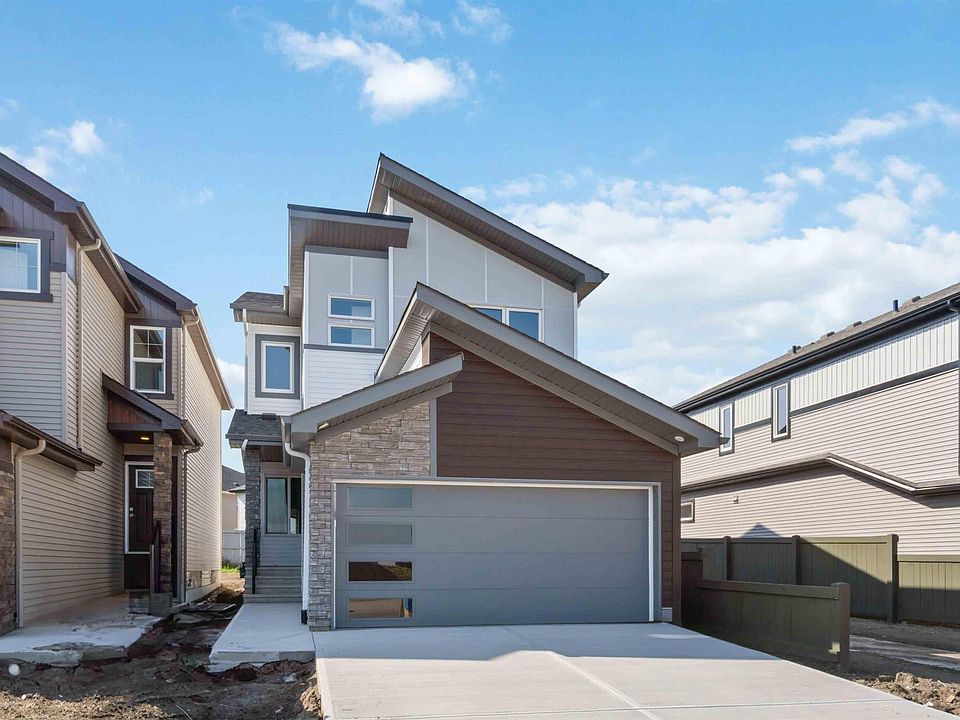 The Affinity model is an elegant, well-built home tailored for today’s families. It features a dbl att garage, extra side windows, separate side entry, 9ft ceilings on the main & basement levels, and LVP flooring throughout the main floor. The foyer opens to a full 3pc bath with walk-in shower & a main floor bedroom. The open-concept kitchen, nook, and great room offer function & style. The kitchen includes an island with flush eating ledge, chimney-style H/F, tile backsplash, Silgranit undermount sink with black faucet, soft-close cabinets, corner pantry, and a built-in microwave in the lower cabinetry. The great room with fireplace & the nook are flooded with natural light and feature patio doors to the backyard. Upstairs, the bright primary suite includes a 4pc ensuite with dbl sinks, walk-in shower & large walk-in closet. A bonus room, 3pc bath, laundry area & 3 additional bedrooms complete the level. Includes upgraded railings, black fixtures, and basement rough-in.