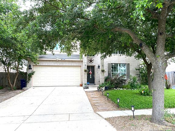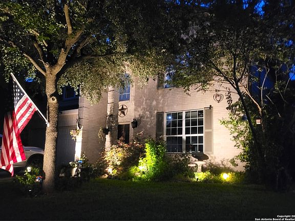 This amazing Helotes home starts with tranquil front views of a working ranch. It is a quiet and peaceful setting on a low traffic road in the back of the neighborhood. Sellers have worked hard to make this home move in ready including the addition of all new wood laminate flooring and fresh paint. The eat in kitchen has freshly painted white cabinetry with pulls and under cabinet lighting, a smooth top stove, and built in microwave. There is a huge walk in pantry/utility room. This house features two living areas and two dining areas along with a spacious upstairs loft. A lovely wood burning fireplace graces the family room. The expansive master suite has a ceiling fan, full bath with separate tub and shower, double vanities and a huge walk in closet. The great backyard includes a storage shed, mature trees, 3 crepe myrtles and rose bushes. Some additional updates include a new 60 gallon water heater, new garage door, some new windows, and a newer roof. The schools here are highly rated and there is a wonderful neighborhood pool and playground. Enjoy the landscape lighting for a dramatic night time effect. A one year home warranty is included!