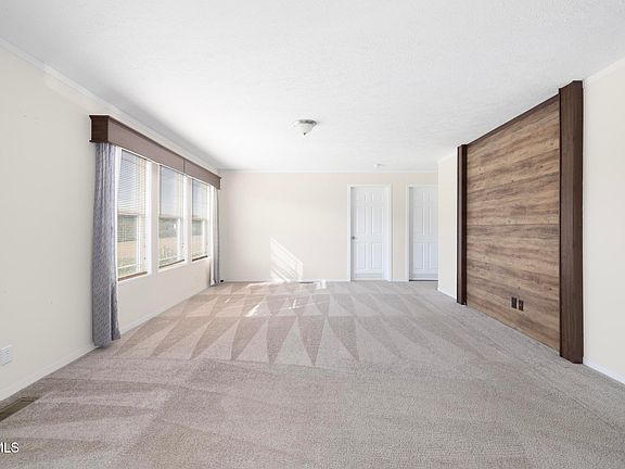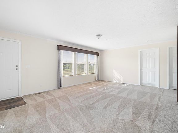 Don't miss this fabulous property that includes rural privacy, with just a short drive into town! Built in 2018, this manufactured home is situated on just under two acres of level land. Great for privacy, setting up your own mini-farm, or even adding a second residence to the property. A long driveway leads to the house with ample area for parking. The exterior features low maintenance finishes, and includes a metal roof! Inside, you will find neutral colors and finished drywall throughout. Fabulous open layout includes the kitchen with an ample amount of cabinetry, large kitchen window over the sink, black appliances with a brand-new microwave, and space for counter bar seating. A formal dining area is across from the kitchen, and adjacent to the large living room.