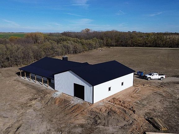 This is a home that was built this year! It sets on 15 acres in between Newton and Wichita. It is only a mile and a half from the interstate and a mile of dirt road! It has a 100 foot well and water was hit at 40 feet. It has a tankless hot water heater! It has quartz countertops in the kitchen and baths. It has custom cabinets. There is extra rooms including a tv room, walk in pantry, large laundry room, and a mud room. There is a 1/2 bath in the shop and an extra room for storage. The shop walls are insulated as well. The back has a full covered porch that is the length of the house. I’m sure I’m missing a ton of stuff but I built it so I can answer any questions you may have!