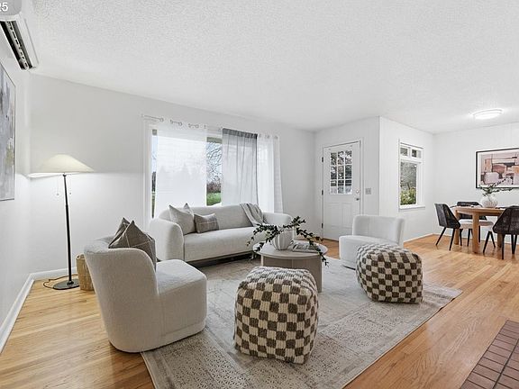 This cutie-pie 1953 one-level Bungalow is ready for your finishing touches and offers smart updates and character. Enjoy a refreshed galley kitchen with newly painted cabinetry, a brand-new fridge. Energy efficient mini-splits provide both heat and cooling, new light fixtures and double-pane vinyl windows throughout, and tankless hot water heater (energy score of 9/10!) Classic features like oak hardwood floors, a cozy wood-burning fireplace and original solid-core doors add charm. A separate laundry room with washer and dryer - included - keeps household noise out of your living space. The unique, DOUBLE OVERHEAD door garage to the backyard offers versatility for hobbyists and adventurers: complete with cabinets and shop space for art projects, car tinkering, camping gear, kayaks, or year-round indoor/outdoor entertaining. Outside, two covered patios, mature trees, and a fully fenced private yard are perfect for social gatherings year round. Located just 1 mile from hip restaurants, bars, boutiques, and Asian markets, and with bus service a quick 3-block stroll away, you’ll love the convenience of Montavilla living. Come take a peek soon! [Home Energy Score = 9. HES Report at https://rpt.greenbuildingregistry.com/hes/OR10243044]