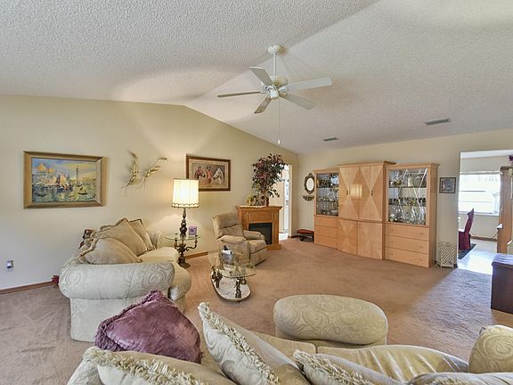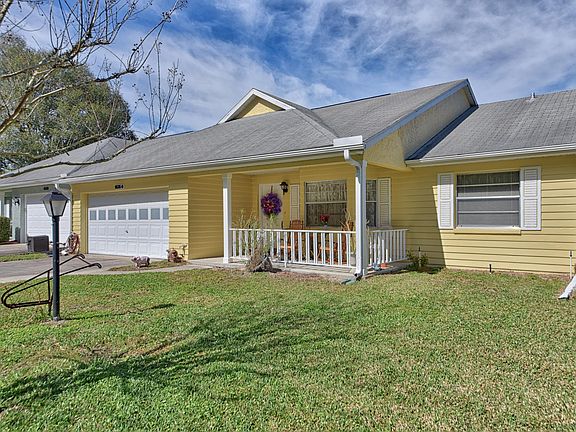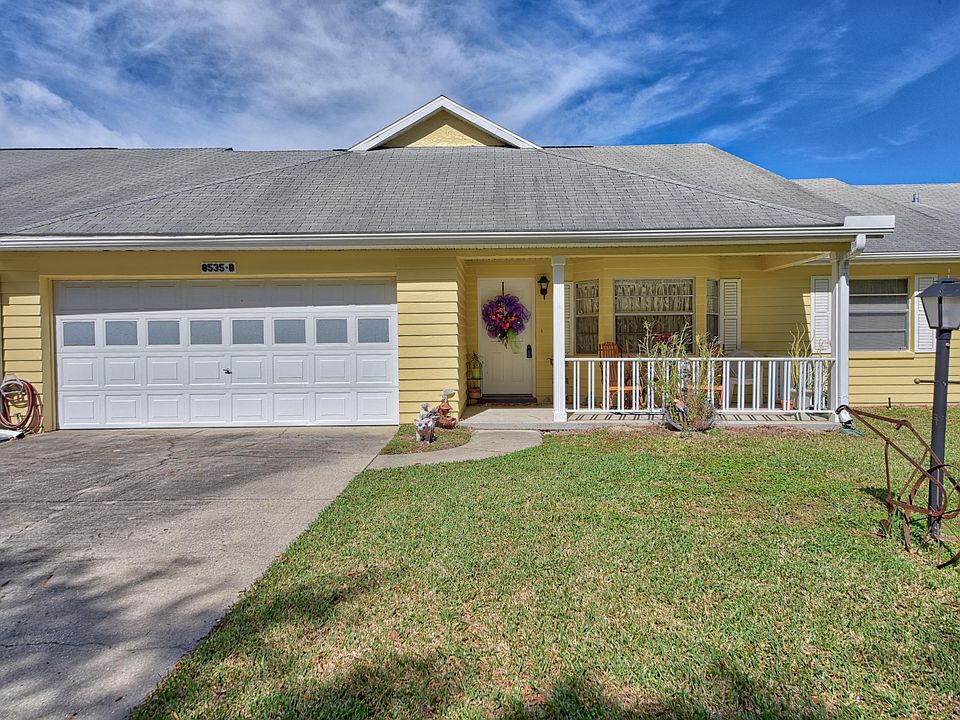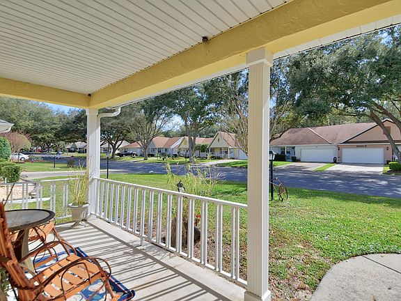 LOCATION-LOCATION-LOCATION! NO NEIGHBORS IN BACK! This spacious Augusta model villa home is located in the much sought after gated 55+ golf community of On Top of the World. A large inviting front porch under roof welcomes you to this home. The home features 2 bedrooms, a separate library/flex room, 2 full baths, master bath with step-in shower, 2-car garage, vaulted ceilings, spacious Living Room/Dining Room/Great Room, eat-in kitchen with a view, freshly painted exterior (2018), newer HVAC (2013), inviting patio out back, pull-down stairs to access attic storage, utility sink, and much more! Roof 2009. Lawn care, water & sewer, basic cable, gym, exercise classes, 24-hour guarded gate, exterior painting, and more are included in your monthly amenities fee.