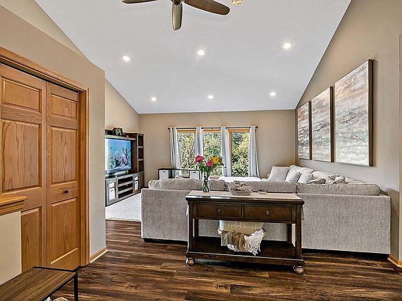 Experience privacy and tranquility on 26.5 acres in Chisago City with this spacious 4 bedroom, 3 bath walkout rambler overlooking Sam’s Lake. A long driveway leads to the home, creating a true sense of seclusion. Inside you’ll find over 2,800 finished sq. ft. with vaulted ceilings, a bright kitchen filled with natural light, and a cozy gas fireplace. The lower level features a large family room and wet bar, perfect for entertaining. Step outside to enjoy the peaceful deck setting, surrounded by nature and abundant wildlife. With a 3 car garage, ample storage, and the feel of a private retreat, this property blends comfort, space, and natural beauty all just minutes from town.