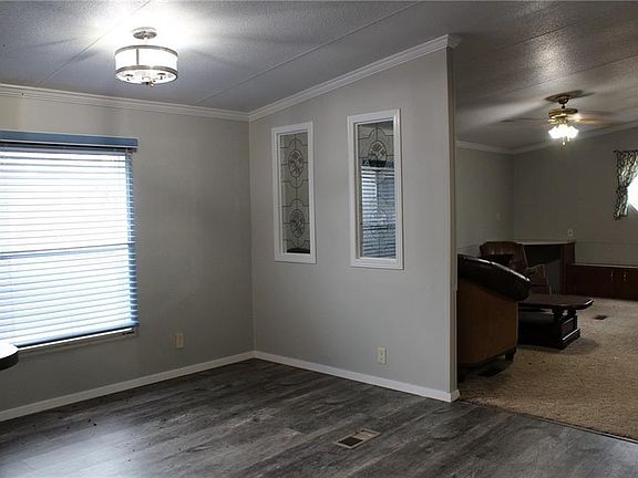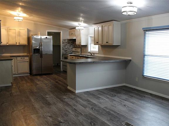 2001 Pathfinder Double Wide | This is home has three bedrooms and two bathrooms. It has a split floor plan, living room, separate den with wood burning fireplace. The kitchen and main bathroom has been updated with all new cabinets, lights, and flooring. There is outside storage (shed), metal carport, and a double carport.