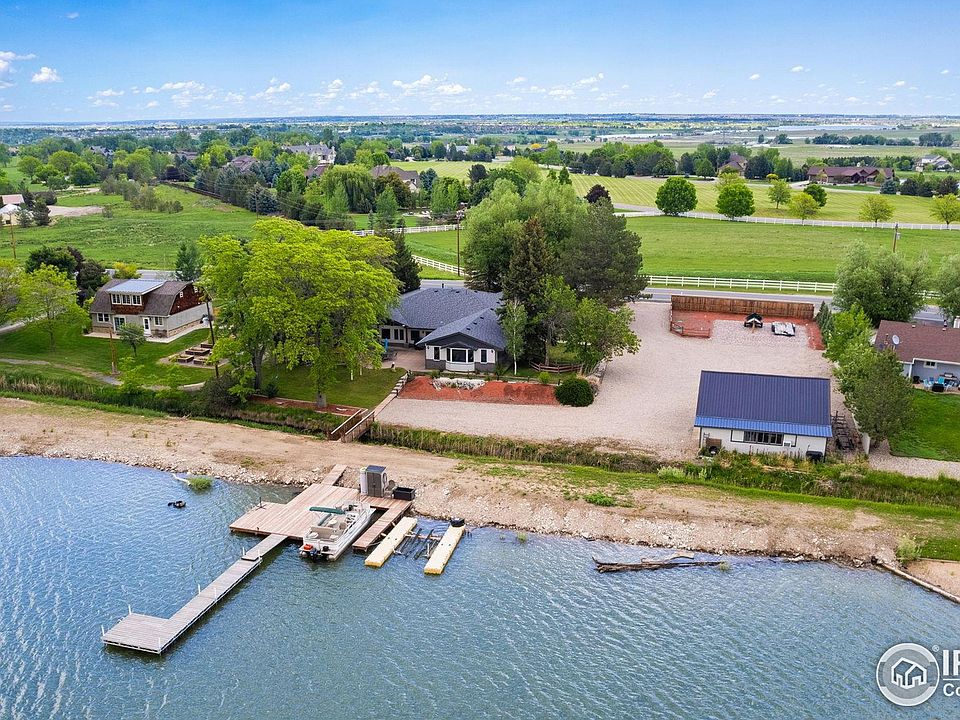 Don't miss your opportunity to own this unique Fort Collins gem, where style, space, and scenery come together in perfect harmony. This lakefront property has NO HOA and is nestled on Donath Lake, a private, fish-stocked waterski lake (membership available). Sip your morning coffee from your private dock and enjoy breathtaking sunsets over the water. Step inside to discover a thoughtfully designed open floor plan flooded with natural light. At the heart of the home is a designer kitchen featuring custom Tharp cabinetry, quartz countertops, premium Kitchen-Aid appliances, a 10'x5' eat-in island, and engineered hardwood floors. The spacious main living room offers unobstructed lake and mountain views, while the generously sized bedrooms offer comfort and privacy. A large bonus room adds flexibility-perfect as an additional living area, formal dining room, home office, or easily converted into another bedroom to fit your lifestyle. The finished basement provides ample space for a home theater, game room, or guest retreat. Outside, enjoy a sprawling 0.7-acre lot and detached 30'x30' shop-ideal for hobbies, storage or a future studio.